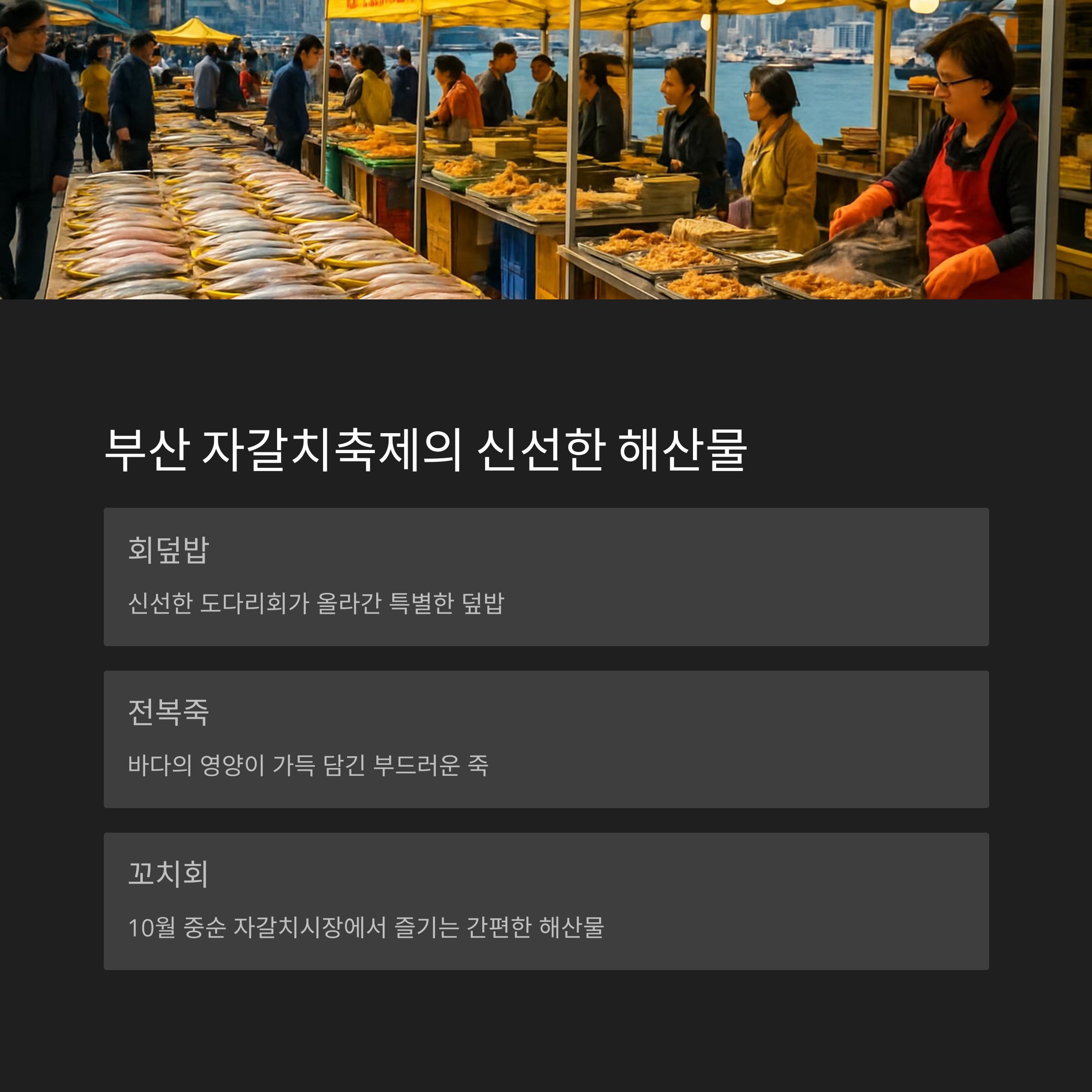 | 장소 | 부산 중구 자갈치시장 일대 |