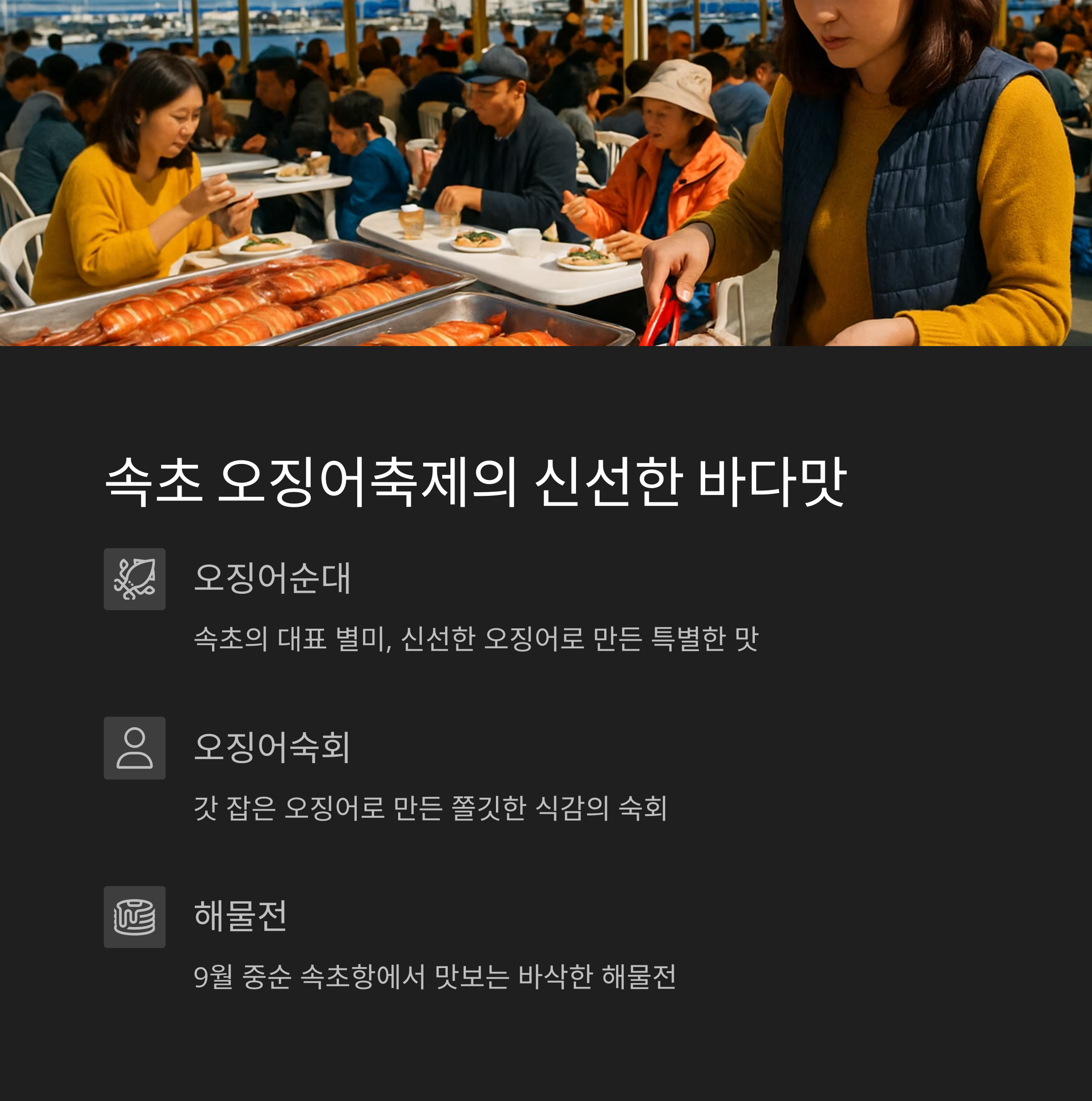| 특이점 | 전통 해물간식 + 야시장 동시 운영 |
