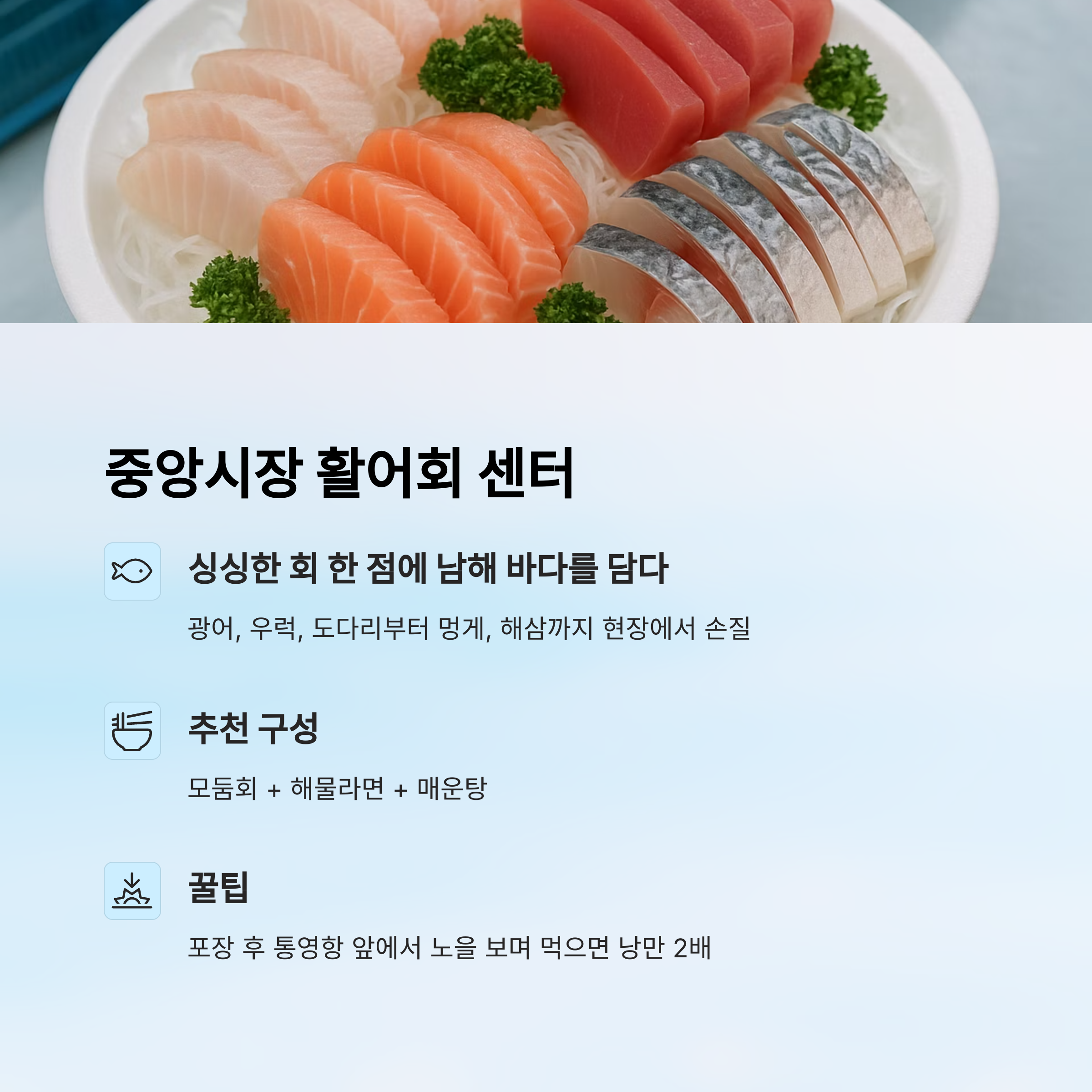 1. 통영 중앙시장 활어회 센터 - 진짜 회는 시장에서!
