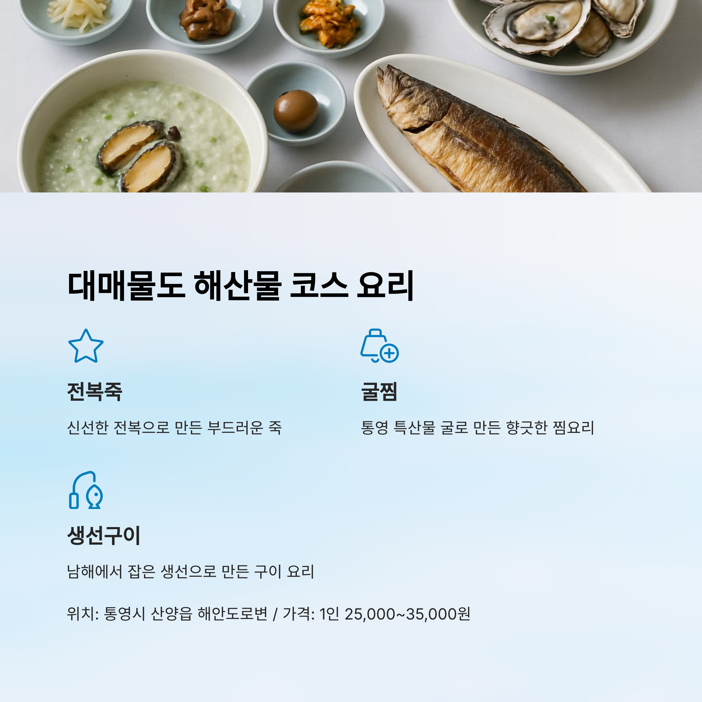 4. 통영 대매물도 해산물 코스 요리 - 완벽한 바다 밥상