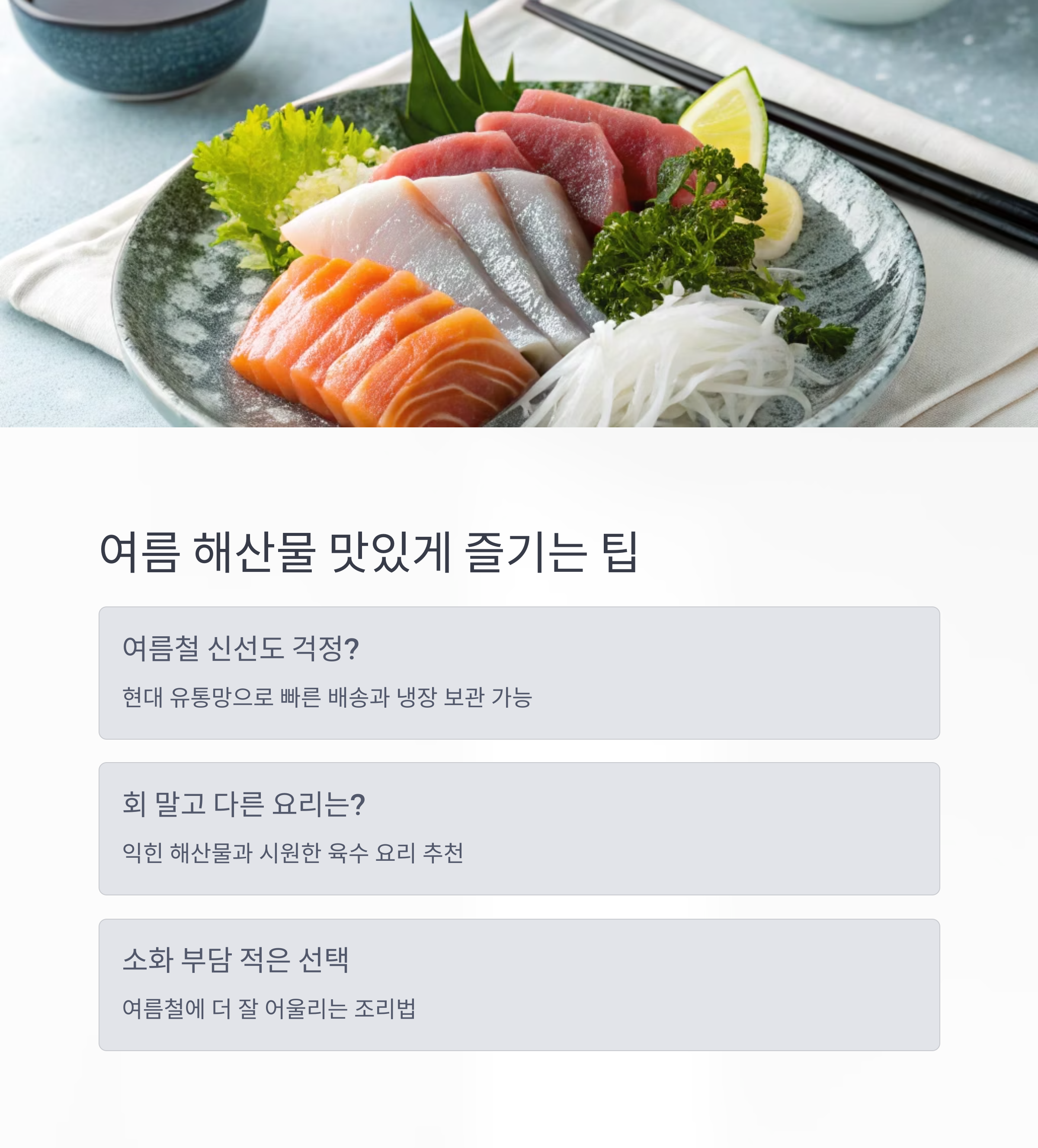A: "걱정 마세요. 현대 유통망 덕분에 빠른 배송과 냉장 보관이 가능해 여름철이 오히려 가장 신선한 시기이기도 합니다."