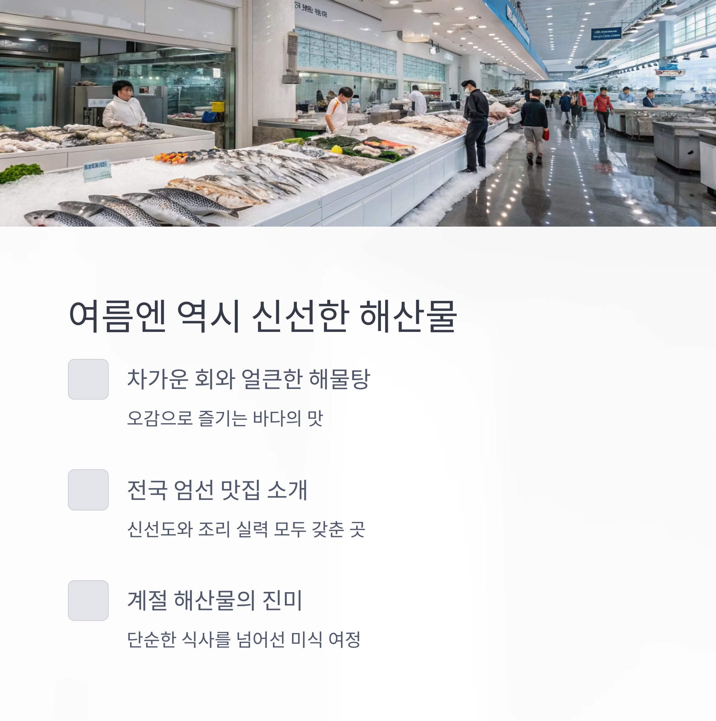 올여름, 맛있는 여행을 원한다면 해산물 중심의 미식 여행을 계획해보세요.