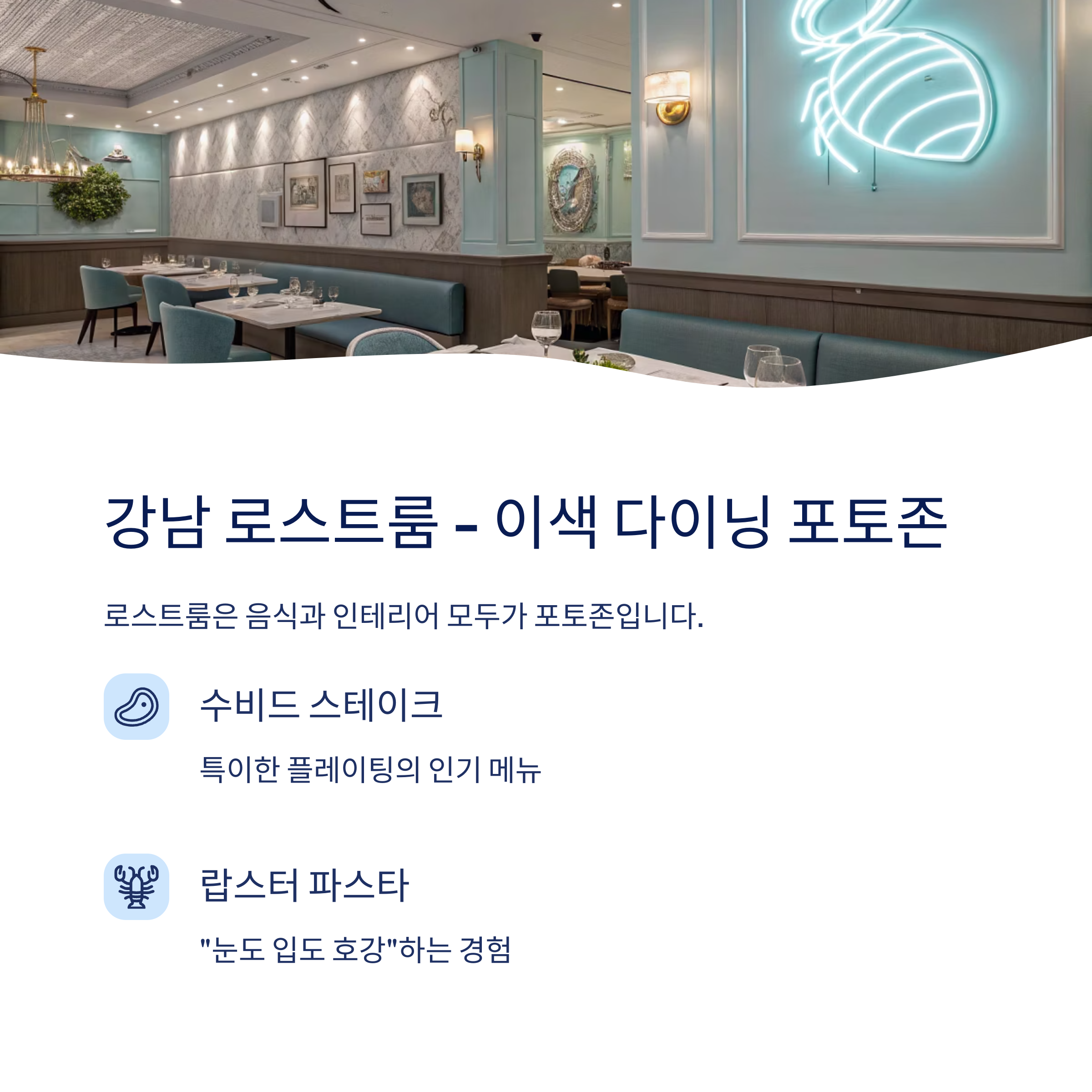 | 인기 메뉴 | 수비드 스테이크, 랍스터 파스타 |