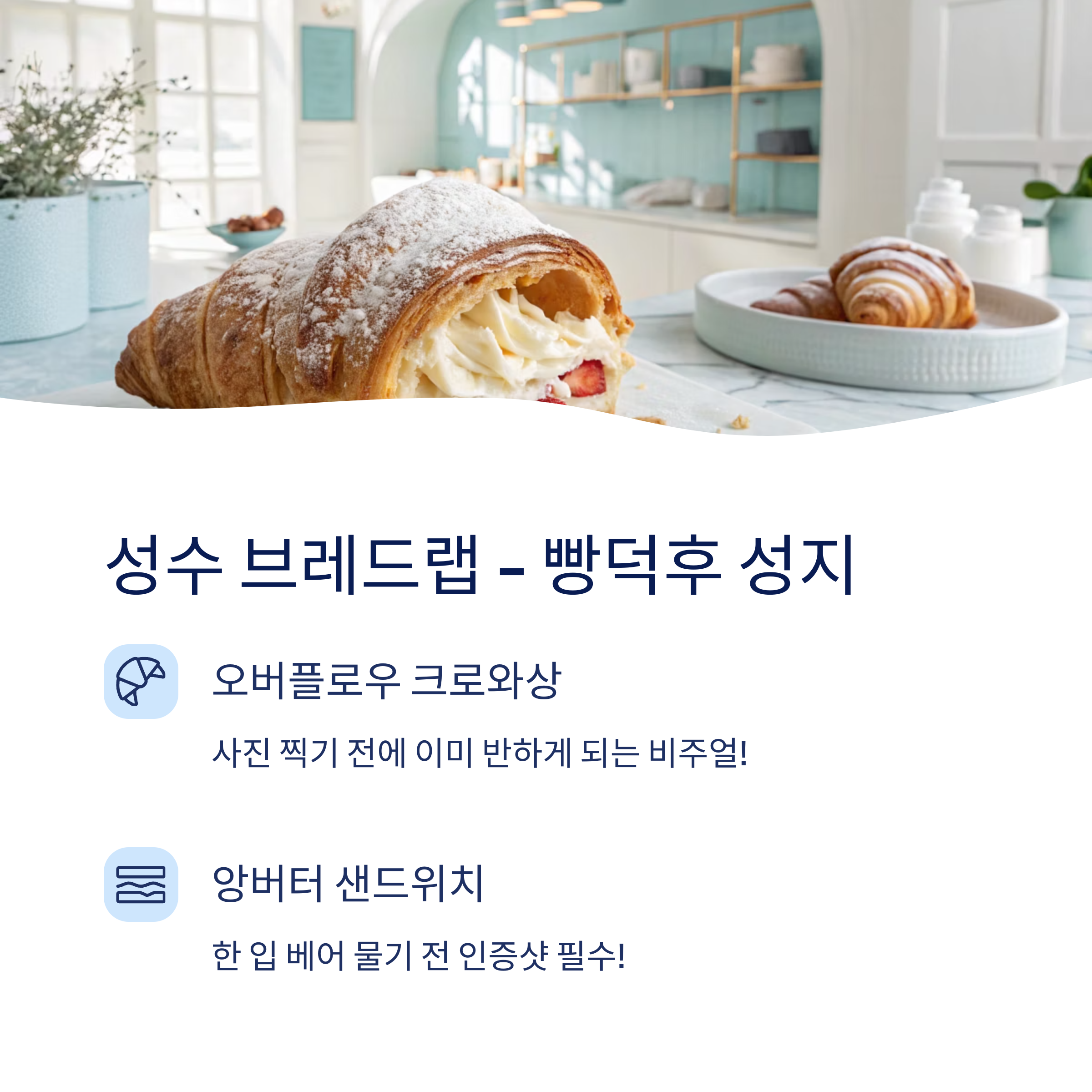 - 인기 메뉴: 오버플로우 크로와상, 앙버터 샌드위치